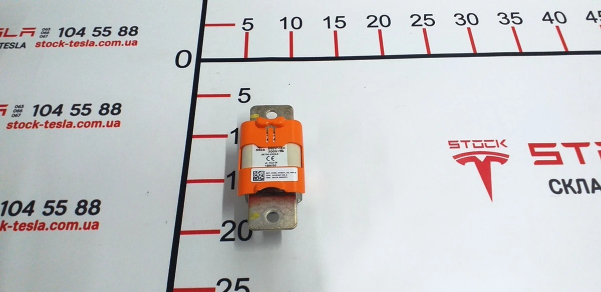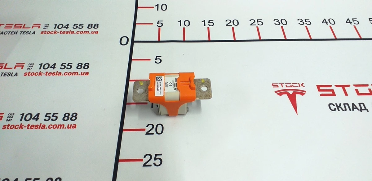 High voltage battery fuse S2 550A for Tesla electric car. An integral component of the power plant of a popular car from the USA. This part reliably protects the battery from power surges and short circuits. The 550A S2 high voltage fuse is suitable for installation in a Tesla Model S electric car. The product is made of combined materials that are resistant to variable surges in the car's power system. These are original Tesla spare parts, as indicated by the branding on the body of the part. For the safe operation of the electric car, the manufacturer recommends using only original products of a well-known brand. The name of the Tesla spare part, as well as its branded article: FIELD KIT PYRO FUSE PACK, S2, 550A, 1089619-00-D.