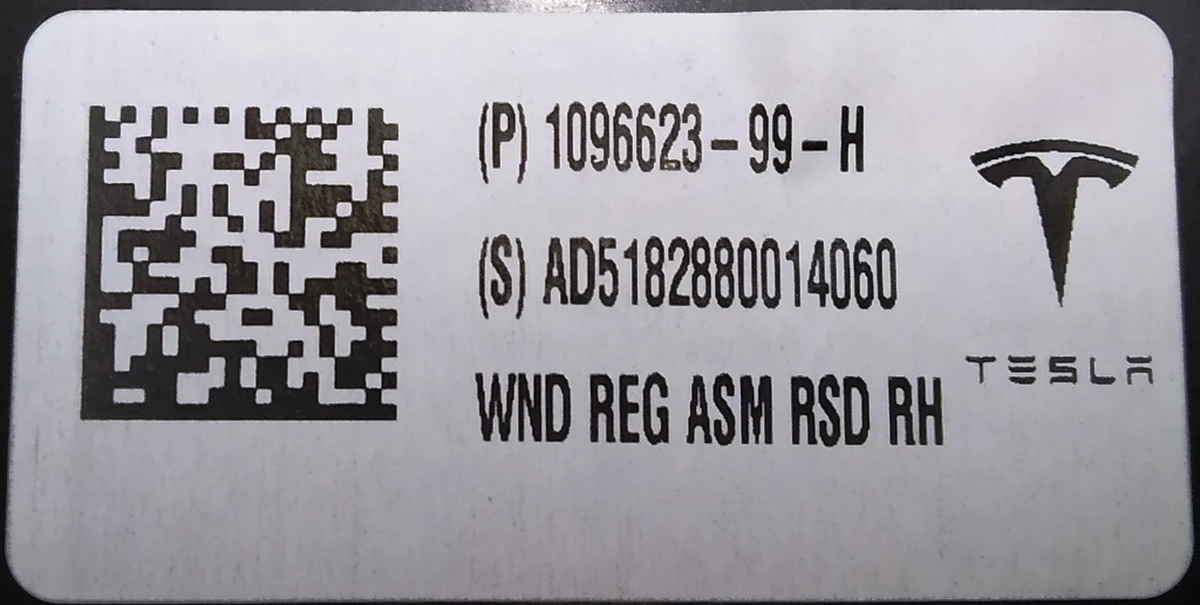 INTEVA RR RH WINDOW REGULATOR Tesla model 3 1096623-00-K