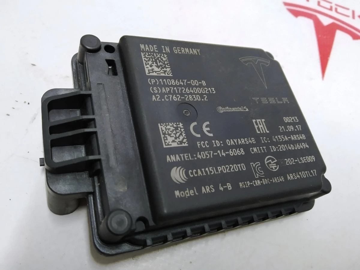 Radar autopilot AP 2.5 to Tesla electric car. One of the key components of the automatic piloting system of the machine. These Tesla parts control the situation outside the car, allowing the autopilot to quickly respond to external interference and obstacles to movement. The part has the brand mark of the American manufacturer, indicating the originality of the product. An electric car supplier from the United States strongly recommends that you do not use a car with a damaged radar for autopilot systems. In this case, it is necessary to quickly replace the failed component with genuine Tesla Model X spare parts.