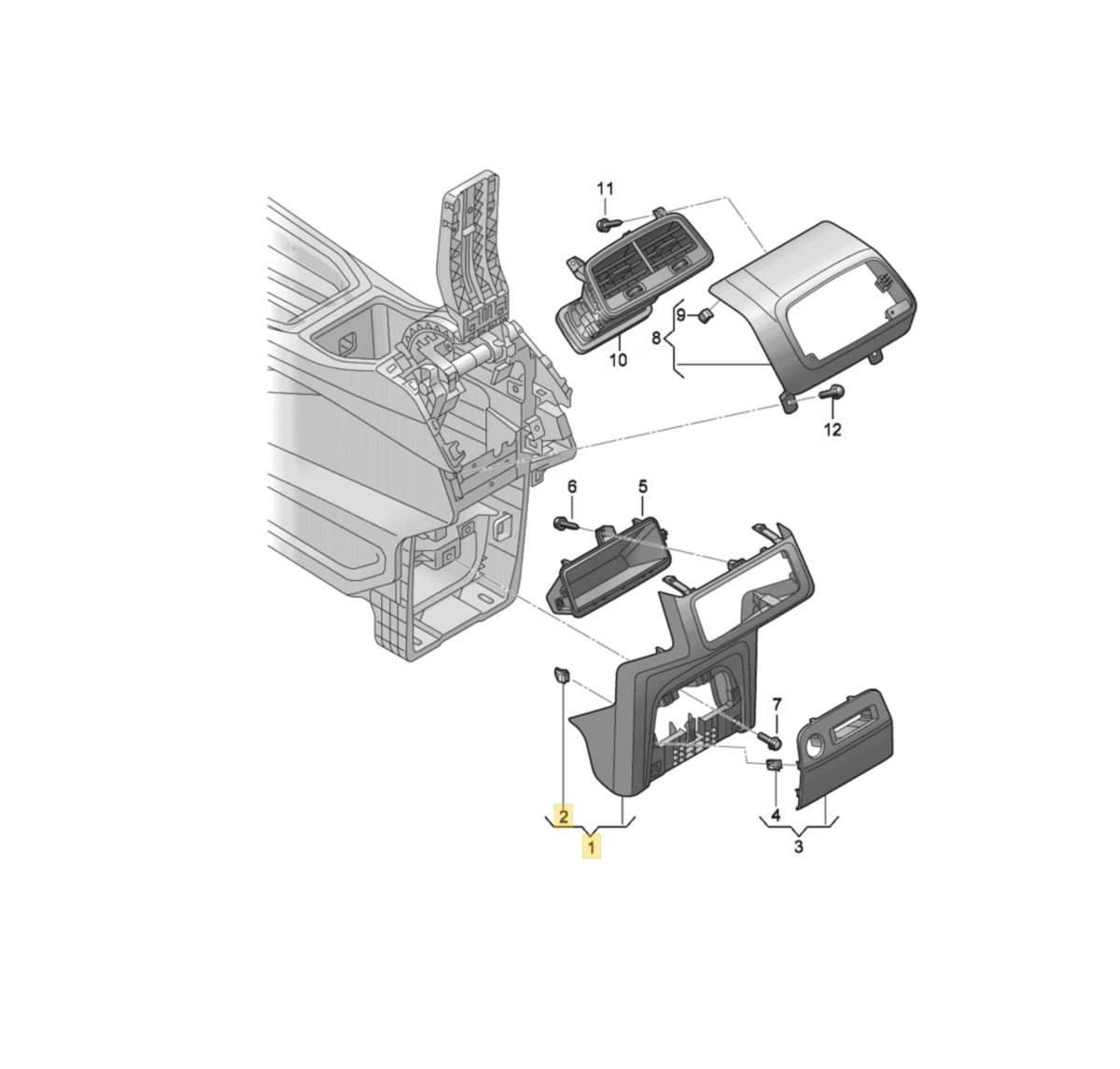 Center console overlay, rear, lower, for connecting USB devices, complete with socket Audi E-tron 4KE863324A