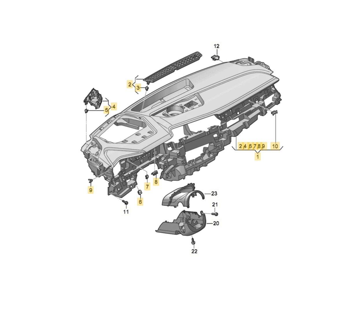 Steering column trim lower part with damage Audi E-tron 4KE953512A