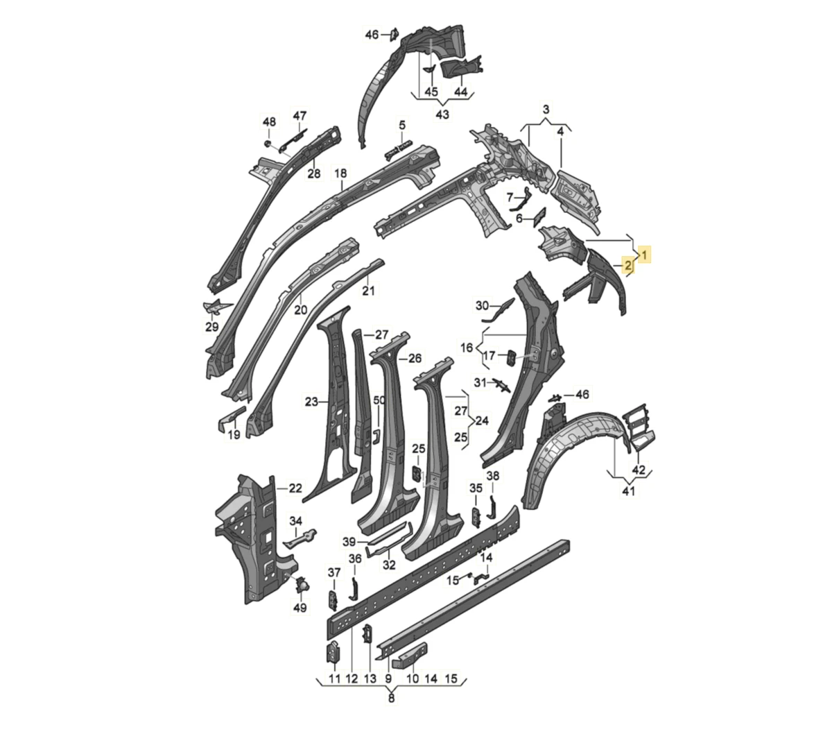 Body cut-off upper part A-pillar with part of front roof panel right 4M0810283E Audi Q7 4M0810179