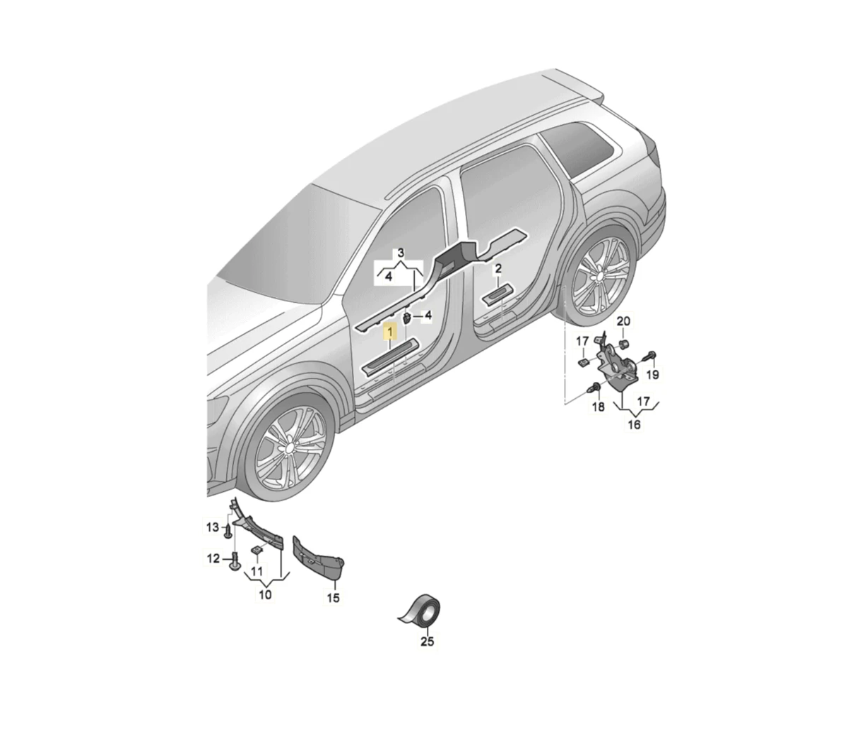 Door sill left inner Audi Q7 4M0853369C