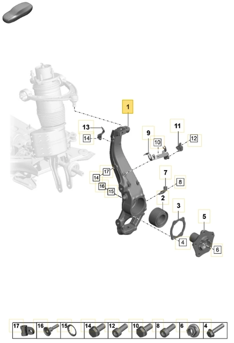 Product: Front left steering knuckle with hub assembly Porsche Taycan 9J1407245B