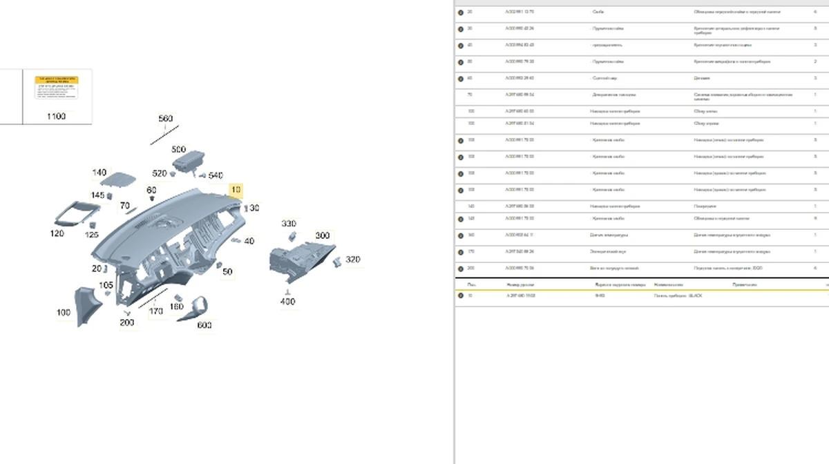 Instrument panel (dashboard) black/space gray Mercedes EQS A2976801905