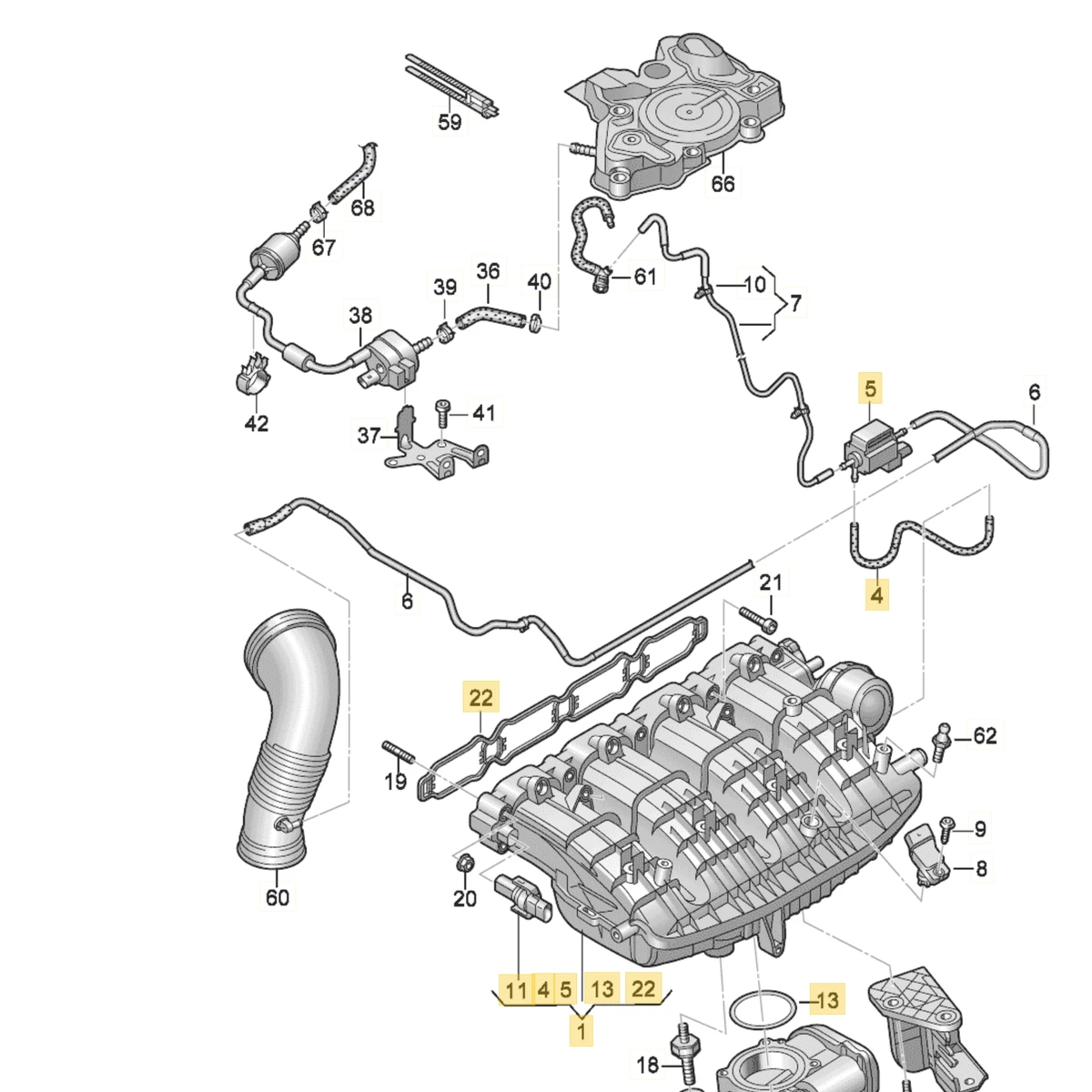 60 - Циркуляція холодоагенту. Конденсатор кліматичної установки з осушувачем. Високовольтний нагрівальний елемент (PTC)