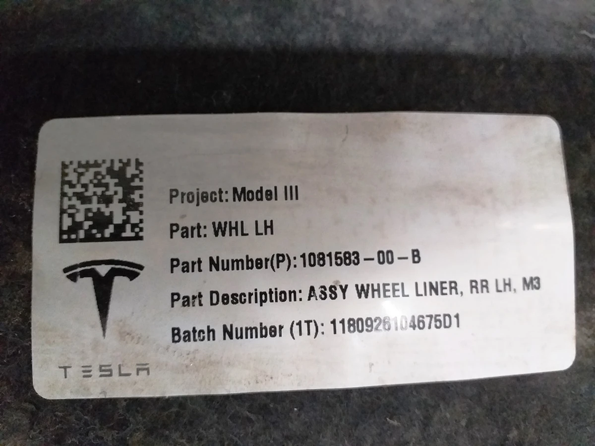 Підкрилок задній лівий для електрокара Tesla Model 3. Захисний елемент, який істотно знижує ризик отримання вашим автомобілем механічних пошкоджень, виникнення корозії і забруднення нижньої частини електрокара. Оригінальні запчастини Тесла виконані з ударотривких і стійких до зносу матеріалів. Фірмові деталі відомого виробника відрізняються тривалим терміном служби і здатністю витримувати великі навантаження при русі електромобіля. Звертаємо увагу, що задній лівий підкрилок підходить тільки для авто Тесла Модель 3. Деталь пройшла ретельний огляд після прибуття в Україну. Повне найменування запчастини Tesla і заводський артикул: ASY WHEEL LINER, RR LH, M3, 1081583-00-D.