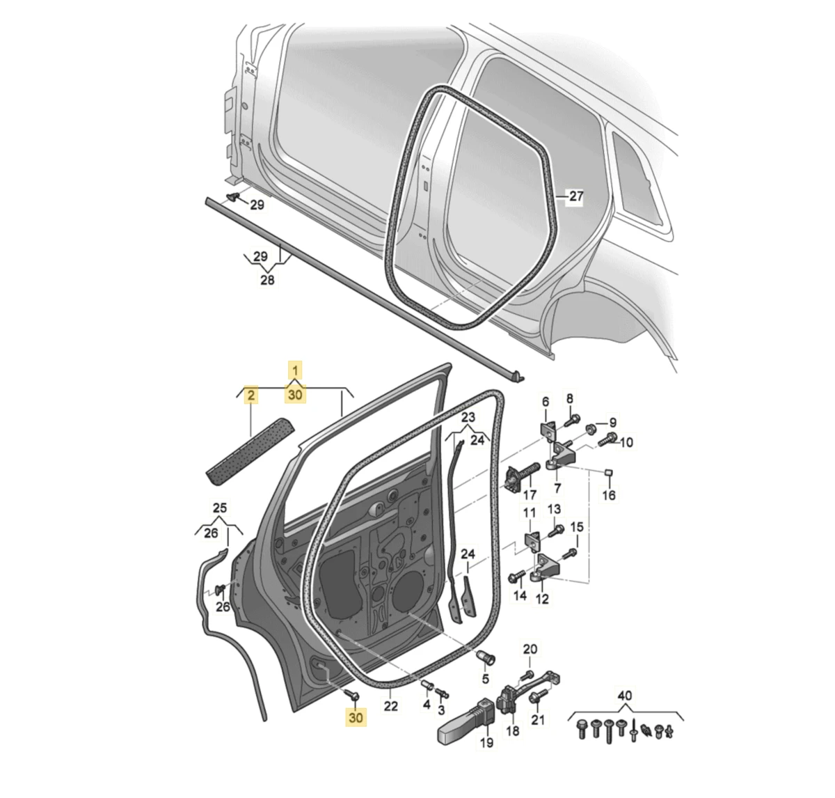 Ущільнювач двері задньої лівої самоклеючий Audi E-tron 4KE839911A