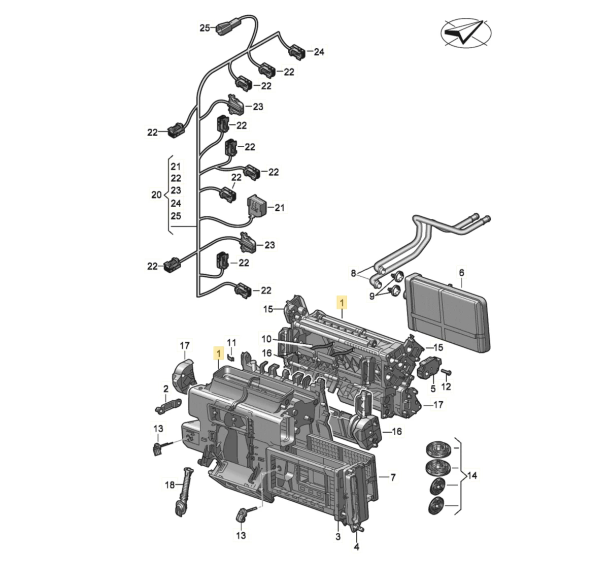 60 - Циркуляція холодоагенту. Конденсатор кліматичної установки з осушувачем. Високовольтний нагрівальний елемент (PTC)