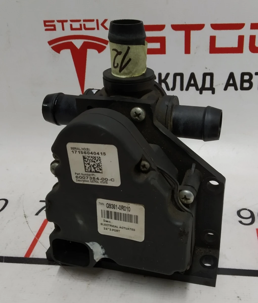 Клапан потрійний на авто Тесла Модель S. Цей елемент є частиною системи охолодження головної батареї американського електрокара. Відповідає за стабільну температуру навколо акумулятора машини. Як і інші запчастини Tesla, доступні для покупки на сайті, потрійний клапан відноситься до оригінальних деталей фірми-виробника із США. Цей факт підтверджує відповідне маркування, нанесене на корпус виробу. Використовується в системі охолодження автомобіля Tesla Model S. Настійно рекомендується купувати лише фірмові деталі, оскільки їхня робота впливає на безпечну експлуатацію електромобіля. Клапан потрійний для охолоджувальної установки виготовлений з міцних матеріалів, стійких до температурних перепадів. Назва запчастини Тесла та заводський артикул товару: 3-WAY VALVE, 6007384-00-C.