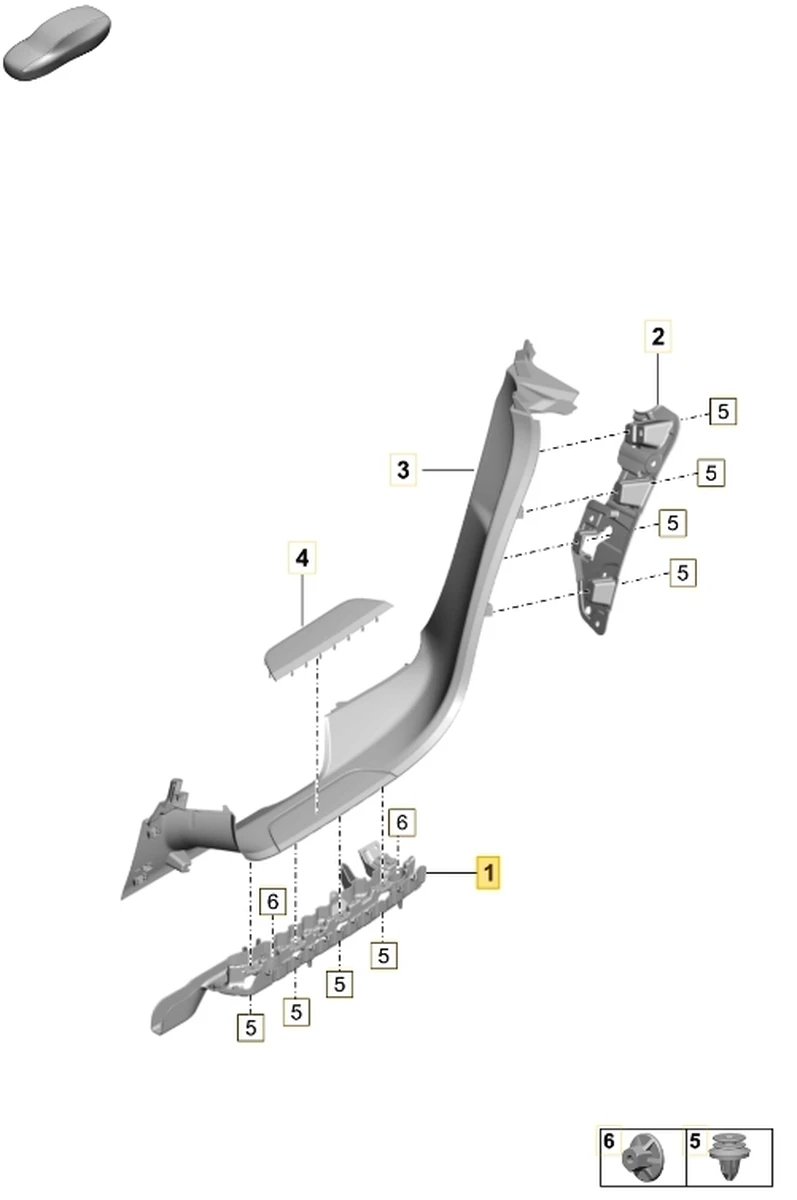 Кронштейн внутрішнього облицювання порога задній правий Porsche Taycan 9J1867730A