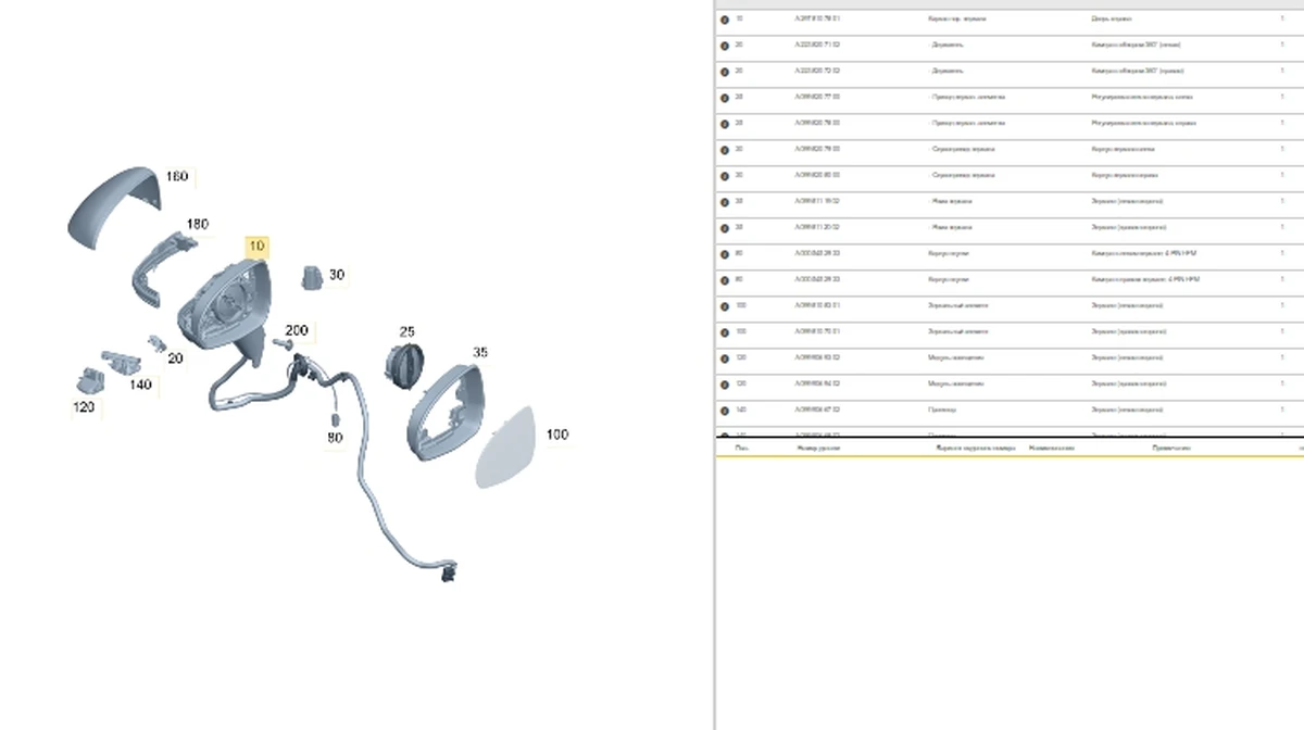 Дзеркало зовнішнє ліве в зборі 922 Hightech Silber A0998108301, A0998111902, A0998207700, A0999066902, A0998103301 (подряпини на корпусі) Mercedes EQS A2978107701