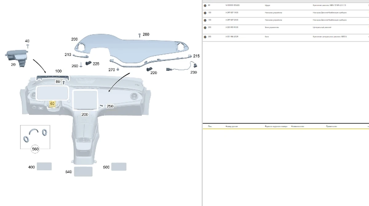Деталі, вбудовані в панель приладів (нижня)