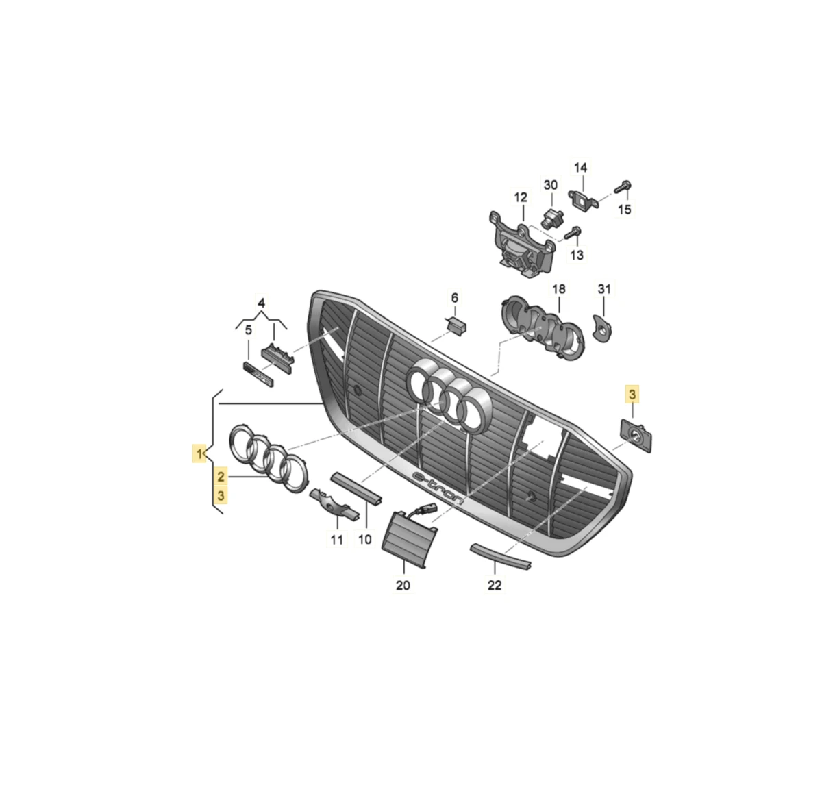 Кронштейн камеры решетки радиатора Audi E-tron 4KE853231