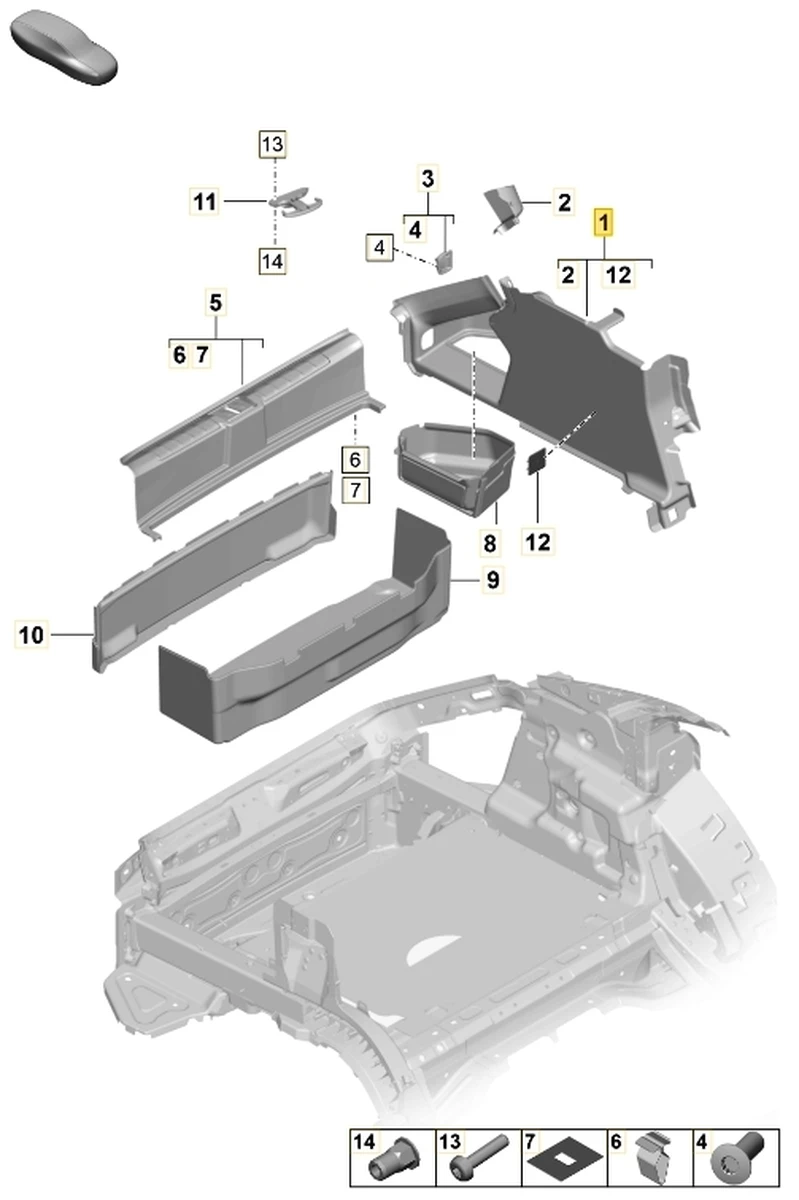 Обивка багажного отсека правая нижняя Porsche Taycan 9J1867428