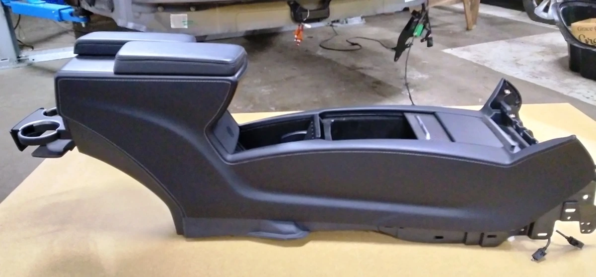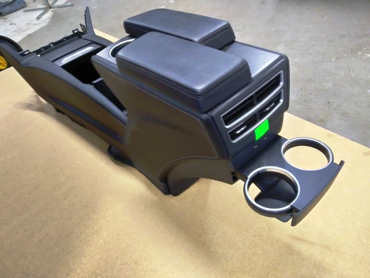 Center console assembly armrest black leather cup holder carbon fiber Tesla model S REST 1026728-S0-E