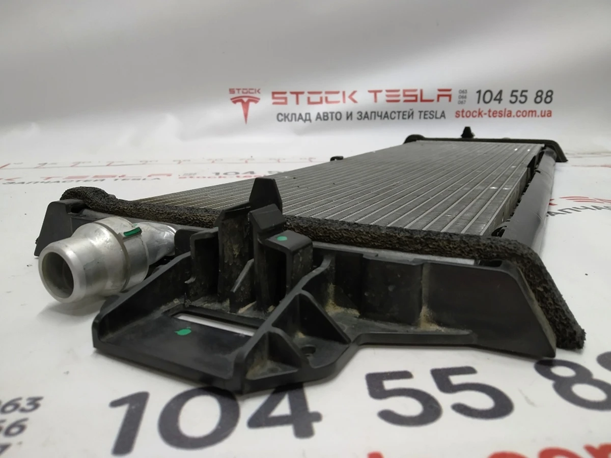 Tesla Model 3 parts related to the traction battery cooling system require periodic inspection and replacement. It will be necessary to order and buy a Tesla main cooling radiator (catalog number 1077082-00-C) in case the spare part is found to be inoperable. The first reason to replace a heatsink is to leak due to mechanical damage.¶Also, the main battery heatsink 1077082-00-C may become clogged. In this case, the efficiency of its work is reduced. To prevent clogging of the battery radiator, the condition and color of the coolant should be checked periodically. The price of a Tesla model 3 radiator 1077082-00-C with a mileage is half that of a new one, and the Stock-Tesla spare parts store guarantees the quality and performance.