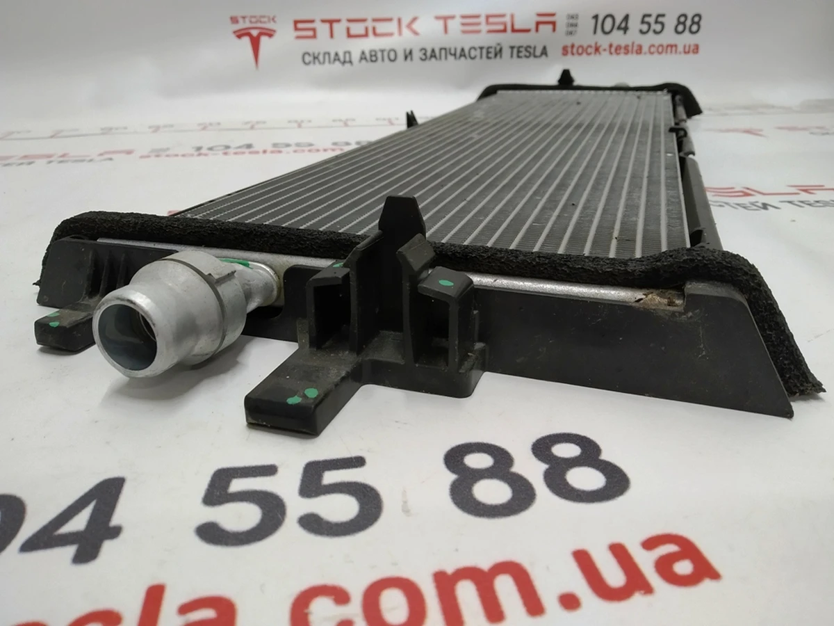 Tesla Model 3 parts related to the traction battery cooling system require periodic inspection and replacement. It will be necessary to order and buy a Tesla main cooling radiator (catalog number 1077082-00-C) in case the spare part is found to be inoperable. The first reason to replace a heatsink is to leak due to mechanical damage.¶Also, the main battery heatsink 1077082-00-C may become clogged. In this case, the efficiency of its work is reduced. To prevent clogging of the battery radiator, the condition and color of the coolant should be checked periodically. The price of a Tesla model 3 radiator 1077082-00-C with a mileage is half that of a new one, and the Stock-Tesla spare parts store guarantees the quality and performance.