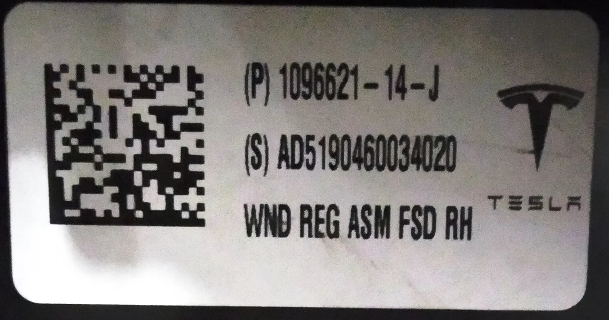 WINDOW REGULATOR - FRONT - RIGHT HAND Tesla model 3 1096621-14-J