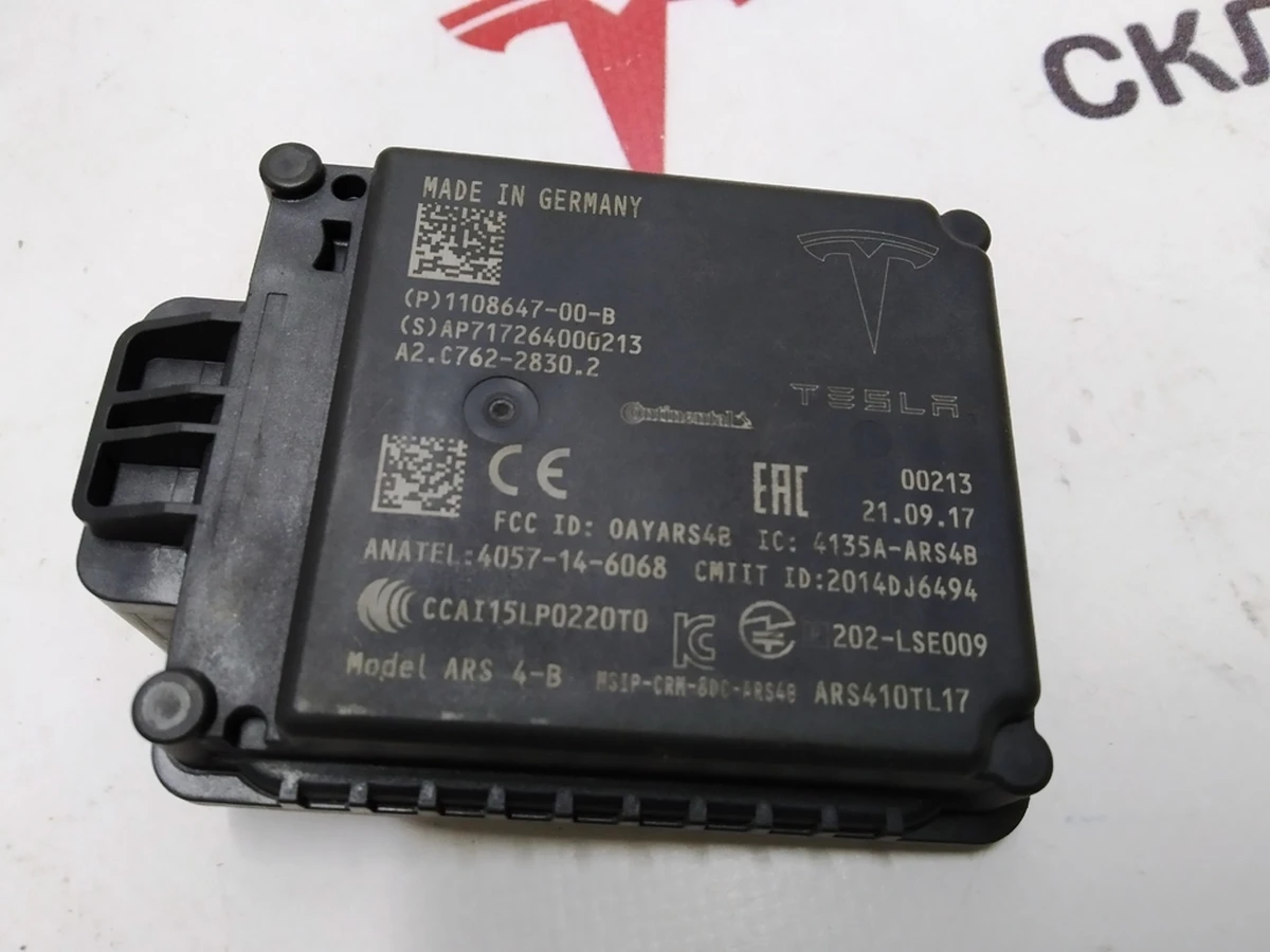 Radar autopilot AP 2.5 to Tesla electric car. One of the key components of the automatic piloting system of the machine. These Tesla parts control the situation outside the car, allowing the autopilot to quickly respond to external interference and obstacles to movement. The part has the brand mark of the American manufacturer, indicating the originality of the product. An electric car supplier from the United States strongly recommends that you do not use a car with a damaged radar for autopilot systems. In this case, it is necessary to quickly replace the failed component with genuine Tesla Model X spare parts.