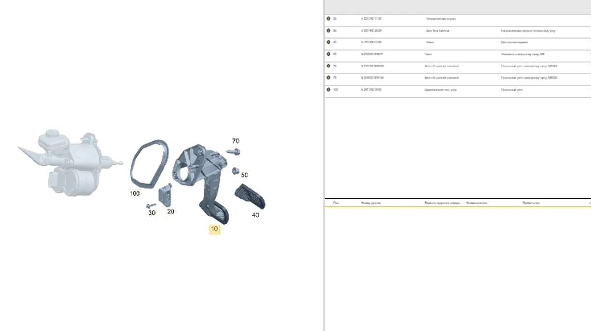 Product: Brake pedal assembly A2972920900, A1702900182 Mercedes EQS A2972903300