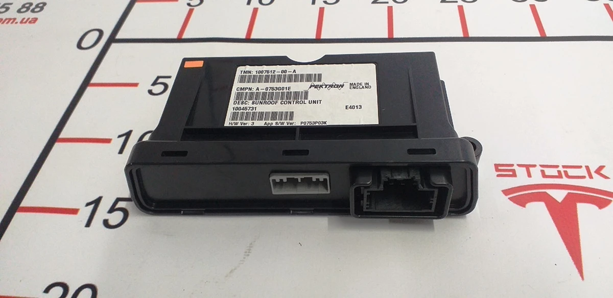 Блок управління панорамним люком на електромобіль Тесла Модель S. Електронний компонент, що відповідає за роботу люка у популярному авто зі США. Боді контролер має спеціальні рознімання для підключення проводки, і виконаний із сучасних матеріалів. Такі запчастини Тесла мають відповідне маркування на корпусі, що свідчить про їхню приналежність до фірмової продукції американського бренду. Електронний блок керування панорамним люком призначений для встановлення на електрокар Tesla Model S. Купивши даний товар, власник авто зможе швидко замінити неробочу деталь та повернути повну функціональність машині. Використовуйте лише оригінальні запчастини Tesla, розраховані на тривалий термін експлуатації. Назва деталі та заводський артикул: MODEL S SUNROOF CONTROLLER, 1007512-00-B.