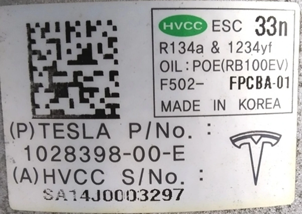 Компрессор кондиционера RWD Tesla model S 1028398-00-J